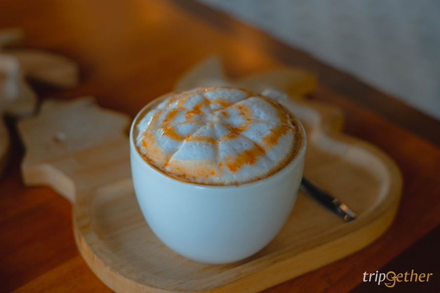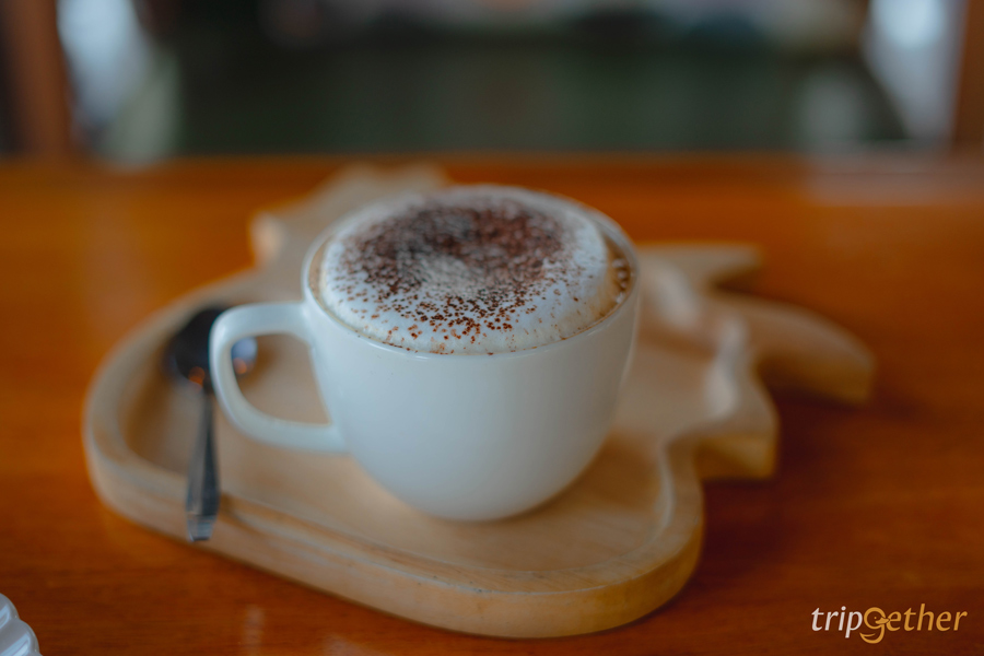 เมนูของหวานของคาเฟ่ มีทั้งเครื่องดื่ม อย่างคาปูชิโน่ และคาราเมลมัคคิอาโต้ที่เสิร์ฟแบบร้อน ฟองนมนุ่มๆ กลิ่นหอมๆ รับรองคอกาแฟถูกใจแน่นอน