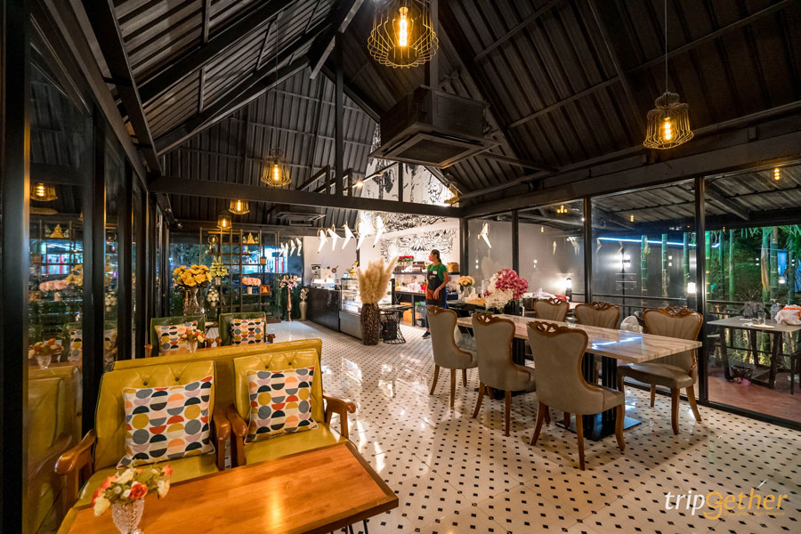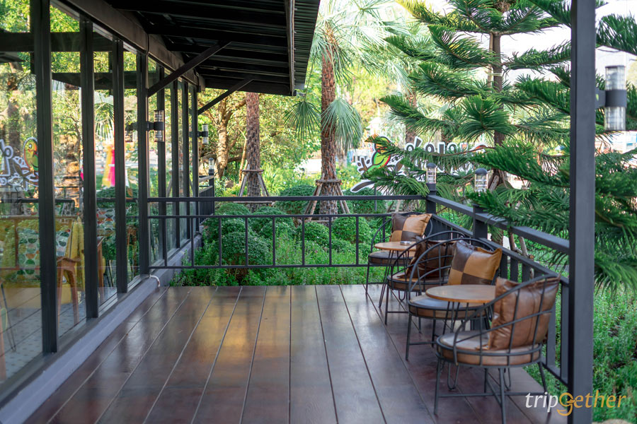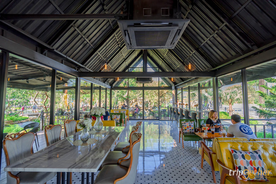 เรามาดูโซนที่นั่งของร้านกันต่อ ภายในร้านมีให้เลือก 3 โซนด้วยกัน โดยแบ่งเป็นโซนอินดอร์ ที่เป็นเรือนกระจกด้านหน้าของร้าน นั่งเย็นๆ ฉ่ำๆ พร้อมกับมองวิวและทิวทัศน์บรรยากาศธรรมชาติของทางร้านได้เกือบจะ 360 องศาเลย