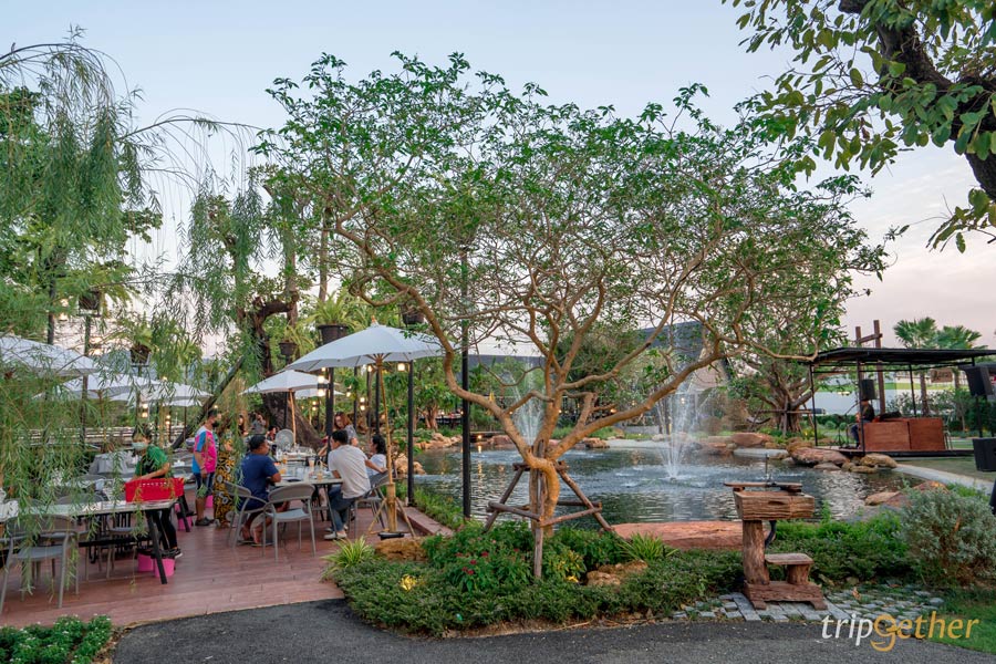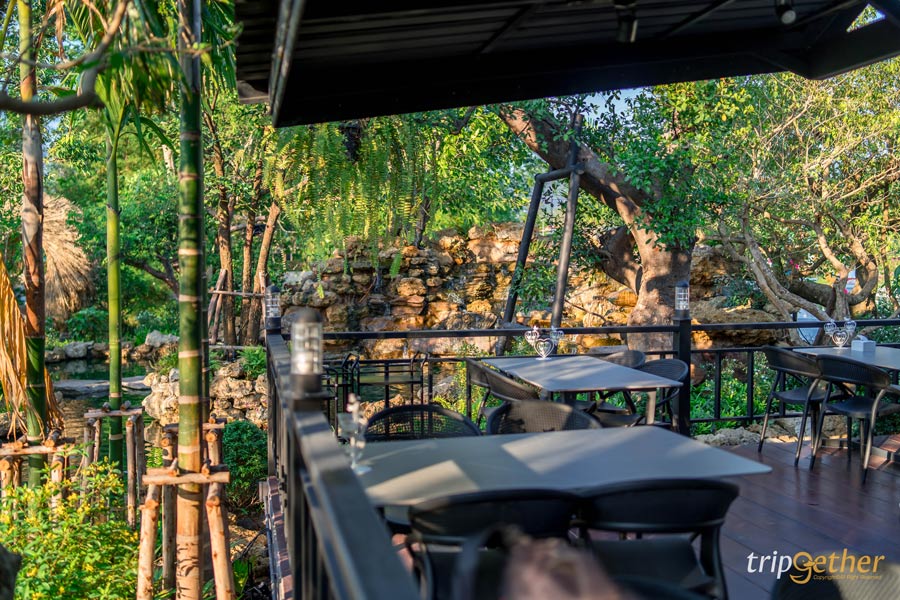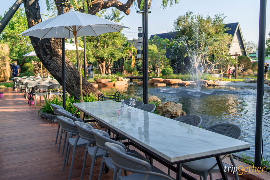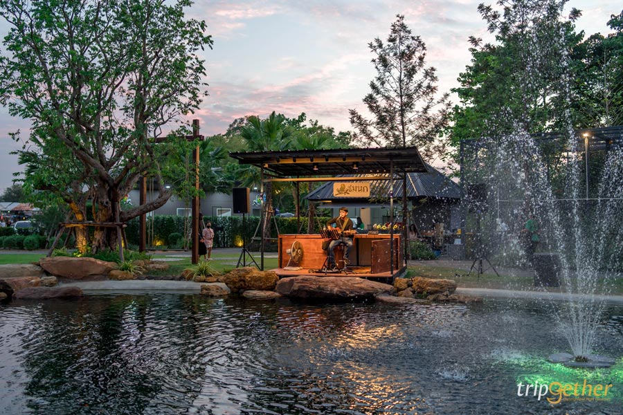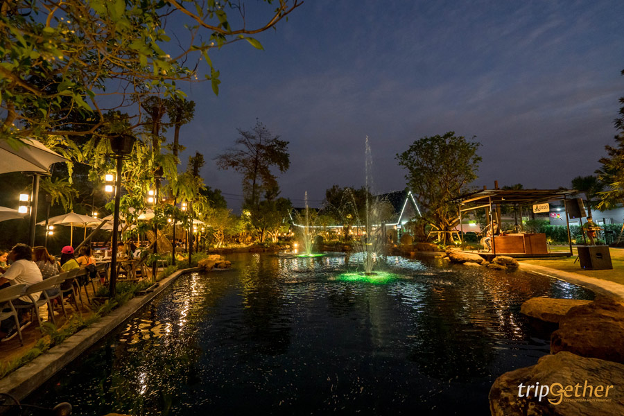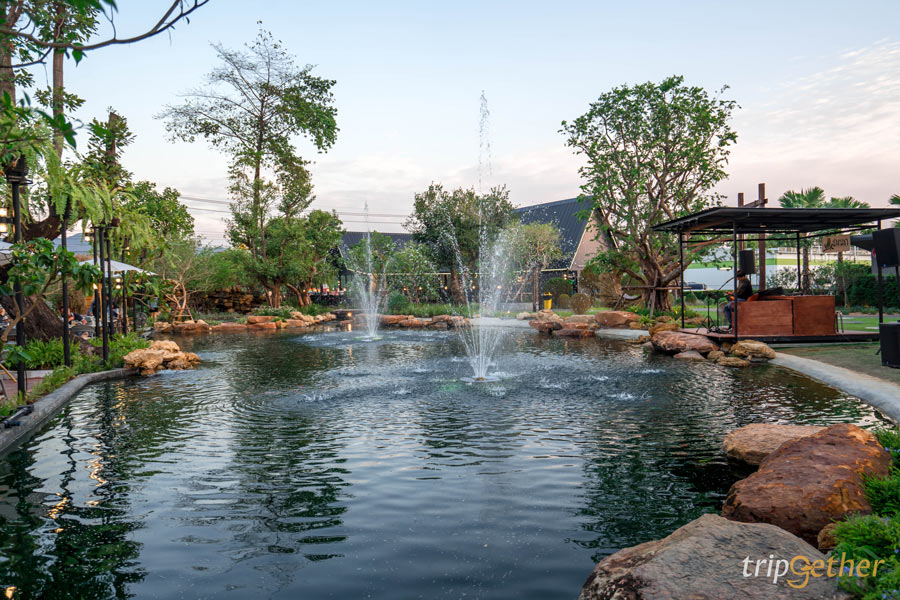 โซนเอาท์ดอร์อีกแบบหนึ่งก็คือ โซนที่นั่งแบบกลางแจ้งที่ขนาบข้างได้ด้วยสระน้ำและลำธาร นั่งสบายๆ ให้ลมโกรกเบาๆ และทีเด็ดของโซนนี้เลยก็คือจะอยู่ตรงข้ามกับเวทีดนตรีสดเลย ดนตรีสดเริ่มเล่นเวลา 18.00 – 21.00 น.