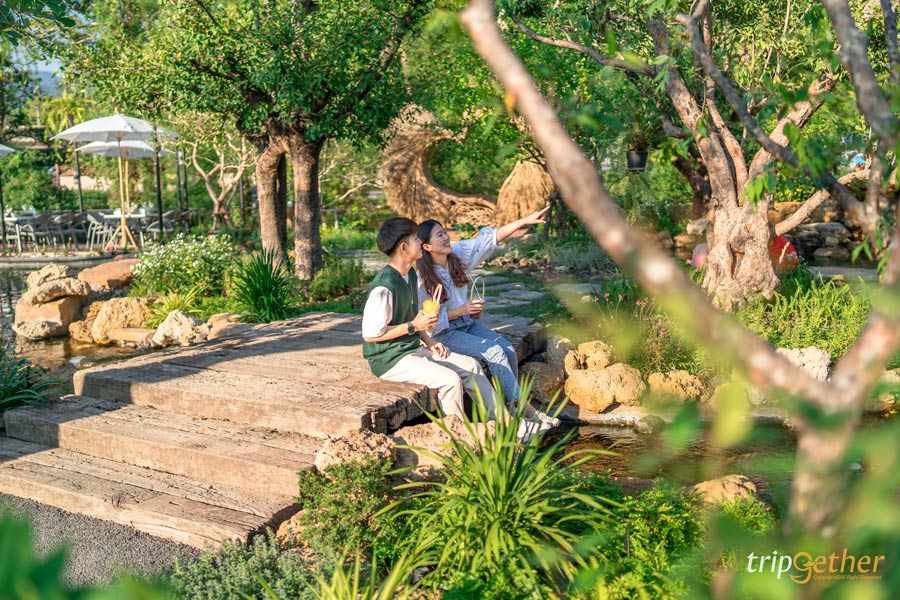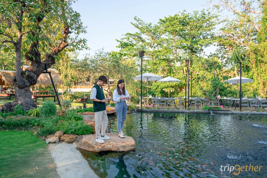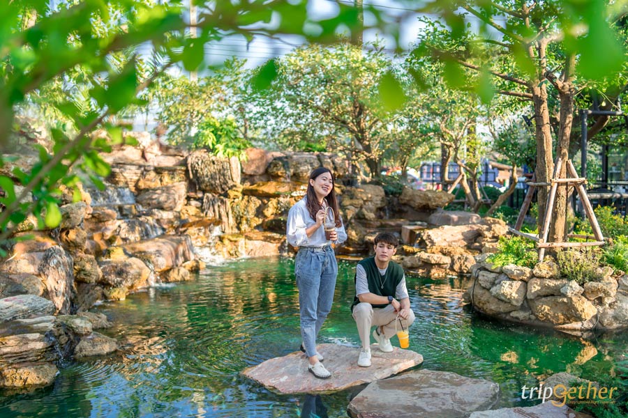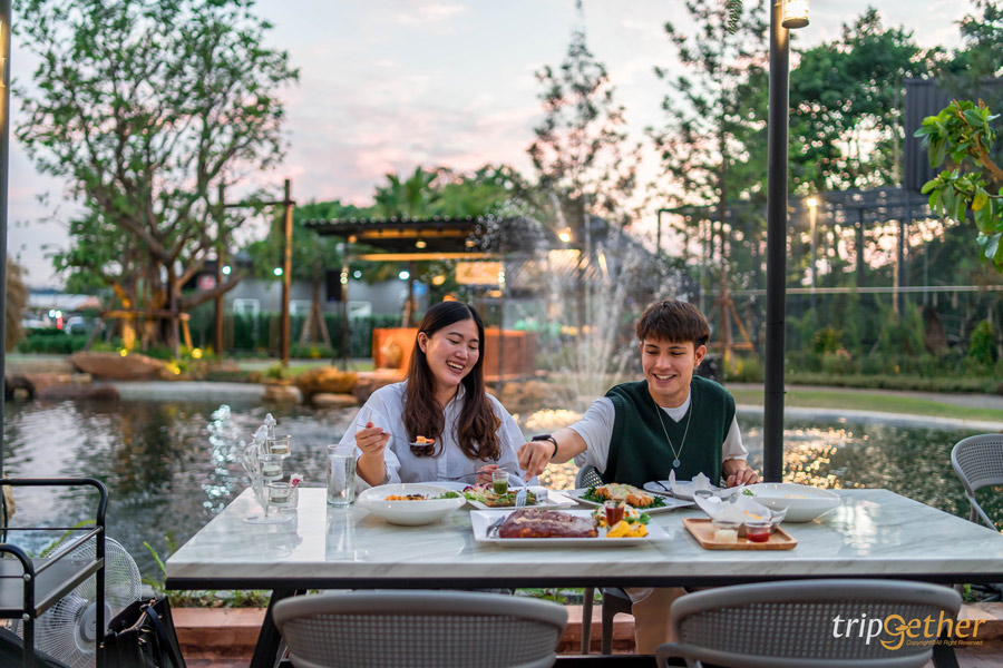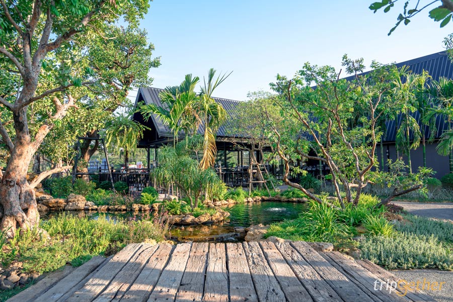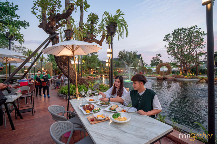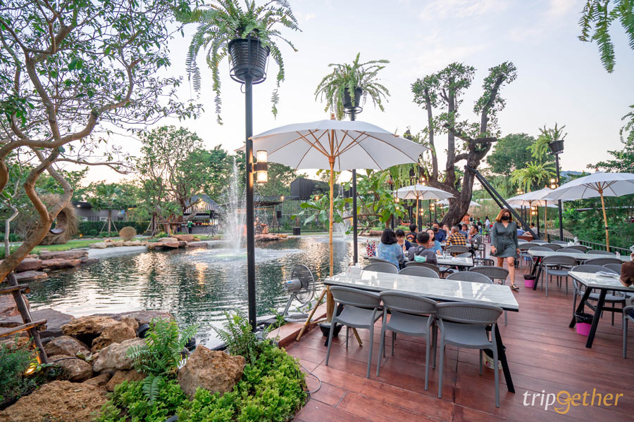 โซนเอาท์ดอร์อีกแบบหนึ่งก็คือ โซนที่นั่งแบบกลางแจ้งที่ขนาบข้างได้ด้วยสระน้ำและลำธาร นั่งสบายๆ ให้ลมโกรกเบาๆ และทีเด็ดของโซนนี้เลยก็คือจะอยู่ตรงข้ามกับเวทีดนตรีสดเลย ดนตรีสดเริ่มเล่นเวลา 18.00 – 21.00 น.