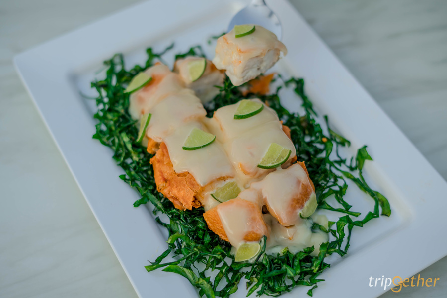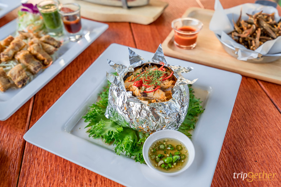 ห่อหมกทะเล ความจัดจ้านที่กลมกล่อมแบบไทยๆ ความหอมของกะทิที่ผสมผสานกับพริกแกงเข้าไปอยู่ในเนื้อของทะเลได้อย่างลงตัว มาในราคา 180 บาท