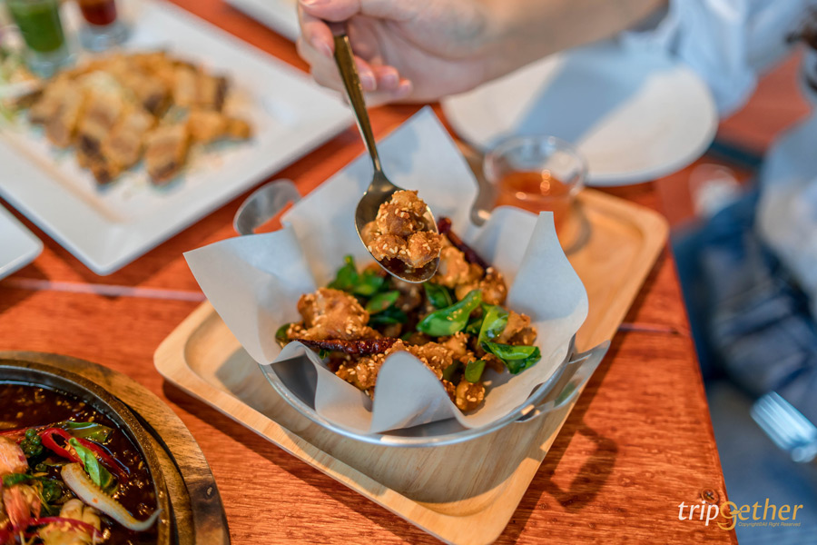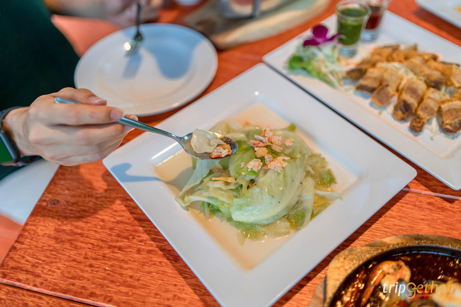 ถ้าอยากรู้ว่าความหอมของน้ำปลามันเป็นยังไง ต้องลองกะหล่ำปลีทอดน้ำปลาเลย กะหล่ำปลีกรอบๆ ฉ่ำไปด้วยน้ำผัด กินกับข้าวสวยร้อนๆ อูมามิมาก ราคาอยู่ที่ 120 บาท