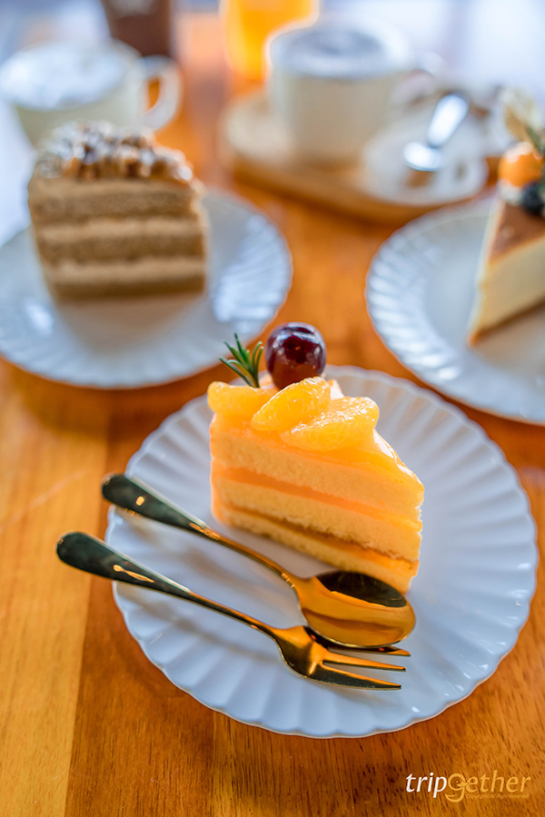 เมนูเค้กก็มีให้เลือกเยอะมากเหมือนกัน แต่ละเมนูก็อร่อยๆ ทั้งนั้น มีทั้งเค้กส้มที่ท็อปด้วยเนื้อส้มชิ้นโต กับเชอร์รี่ฉ่ำๆ หรือจะเป็นชีสเค้กหอมๆ ที่ราดด้วยซอสบลูเบอรร์รี่ เนื้อสัมผัสเนียนละมุนตัดกับครัมเบิ้ล ฟีลกู้ดมาก