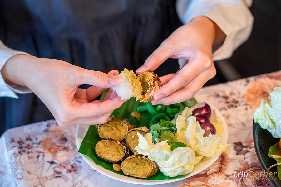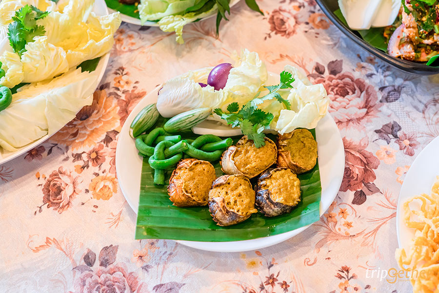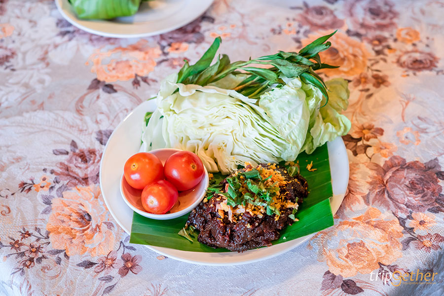 ปูอ่อง เป็นอีกเมนูอาหารเหนือที่ต้องลอง โดยปูอ่องของทางร้านเป็นมันปูแท้ๆ ไม่ผสมแป้งและไข่ เนื้อสัมผัสปูอ่องละเอียดและนุ่มละมุน รสชาติเค็มๆ มันๆ กินคู่กับข้าวเหนียวเข้ากันสุดๆ ราคาอยู่ที่ 120 บาท