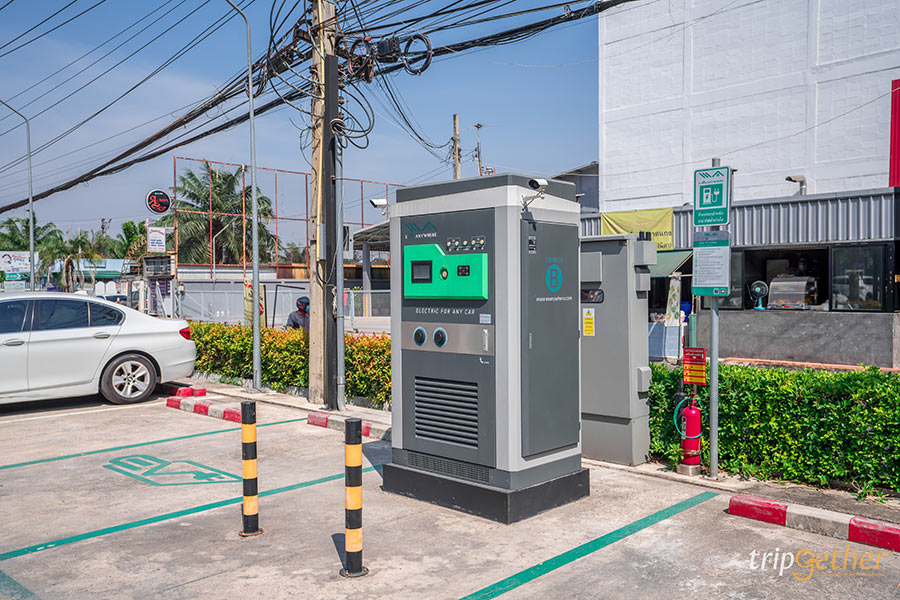 ใครที่ขับรถไฟฟ้ามาจอดที่นี่ได้เลย มีที่ชาร์จไฟให้พร้อม