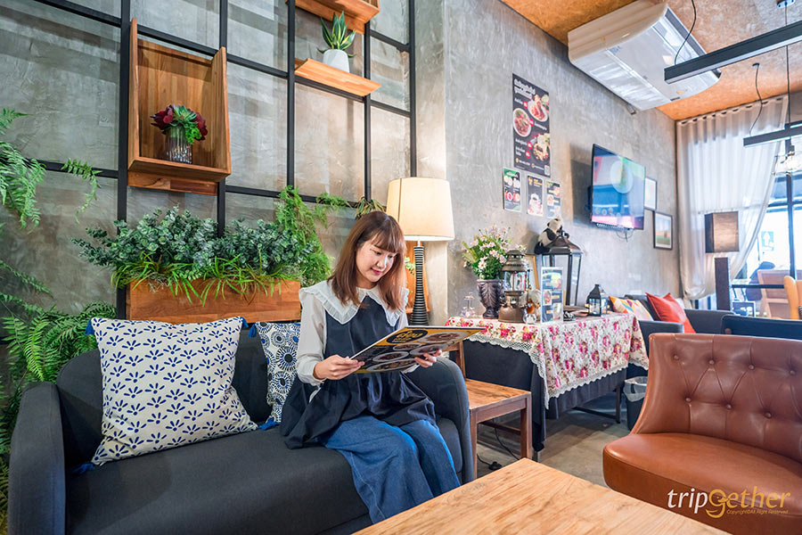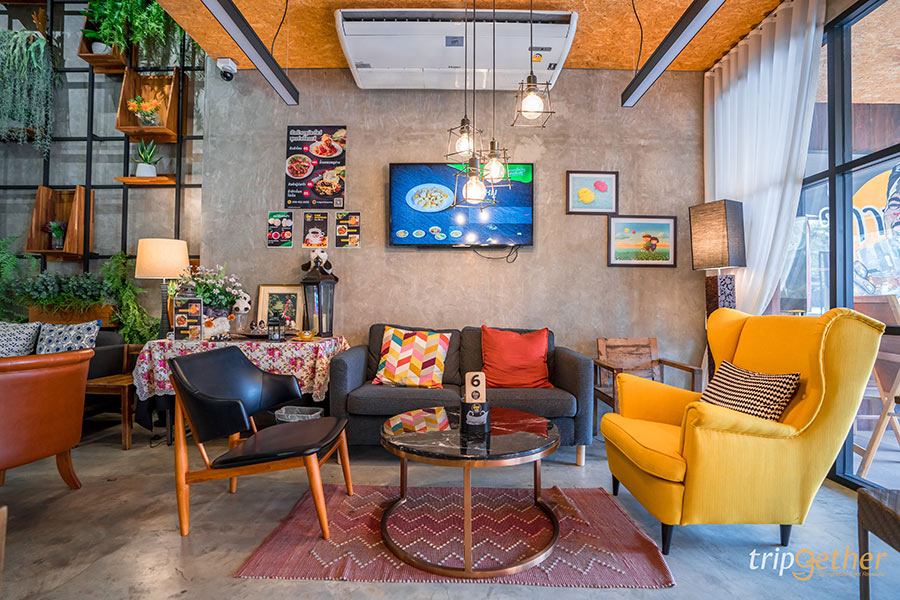 ส่วนที่นั่งในร้านเป็นแบบอินดอร์ห้องแอร์เย็นๆ ทั่วทั้งร้านสามารถรองรับได้มากถึง 50 ที่นั่ง อีกทั้งที่นั่งก็มีหลากหลายขนาดและสไตล์ จะเลือกนั่งเก้าอี้หรือโซฟาก็สบายมากๆ