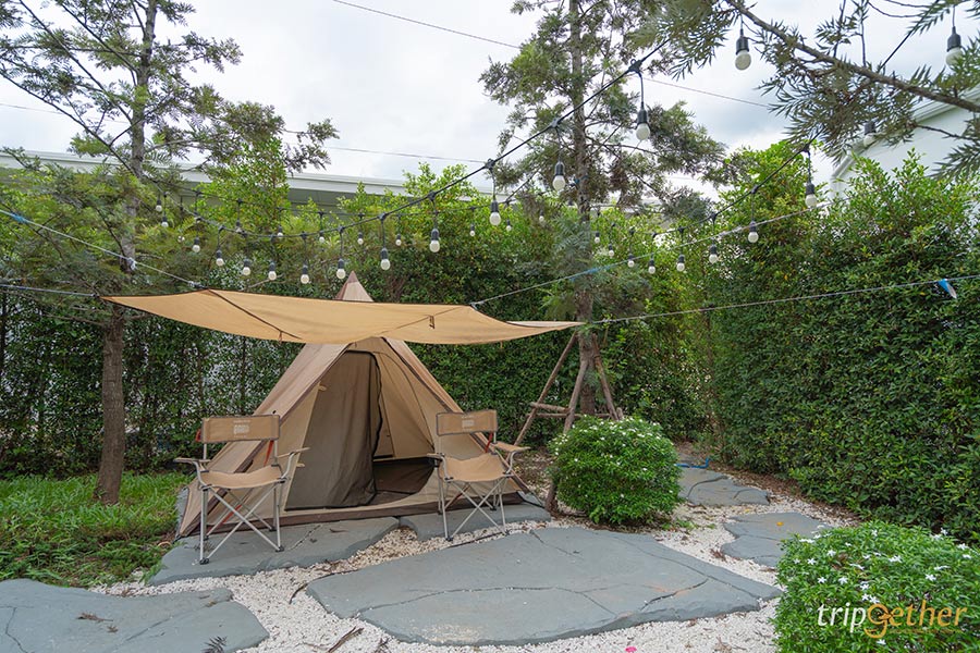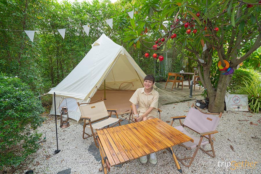 ภายในร้านกางเต็นท์ไว้หลายๆ จุด สามารถเดินไปถ่ายรูปเก๋ๆ ได้เลย