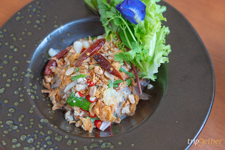 มาต่อกันด้วยความเผ็ดแซ่บของ ยำวุ้นเส้นโบราณ เป็นยำวุ้นเส้นแห้งๆ ตัวเส้นมีความเหนียวนุ่ม เคี้ยวหนึบๆ อีกทั้งเครื่องก็ใส่มาแบบเน้นๆ ไม่ว่าจะเป็น ถั่วลิสง กุ้งแห้ง หมูสับ กระเทียมเจียวกรอบ มีกลิ่นหอมของเครื่องยำอย่างพริกและมะนาว รสชาติเปรี้ยวนำ มีความเผ็ดและหวานตามมา แถมราคาเมื่อเทียบกับเครื่องแน่นๆ เพียง 109 บาทเอง