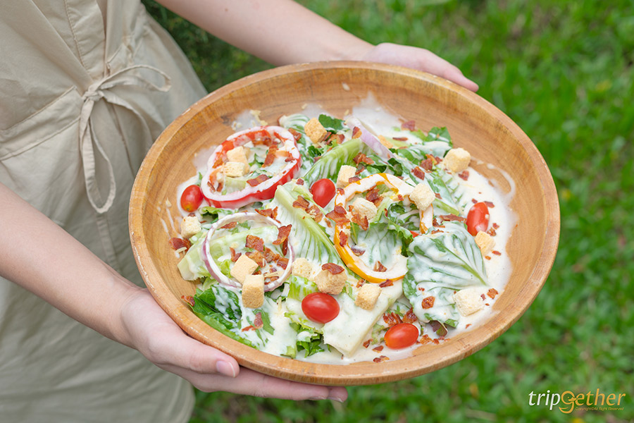และอีกเมนูมาใหม่อย่าง ซีซาร์สลัด เป็นเมนูสลัดที่กินง่ายๆ รสกลมกล่อม คลุกเคล้าผักสลัด หอมแดง มะเขือเทศเข้ากับเดรสซิ่งซีซาร์ กินคู่กับขนมปังและเบคอนกรอบๆ แถมเสิร์ฟใส่ชามใหญ่ๆ ราคาเพียงแค่ 159 บาท เป็นเมนูที่สายเฮลตี้ห้ามพลาดเด็ดขาด