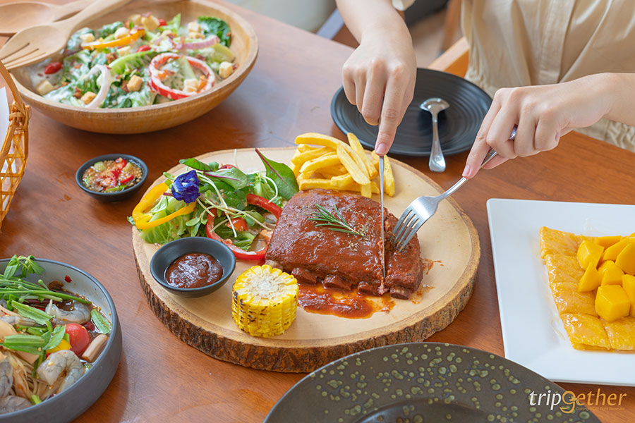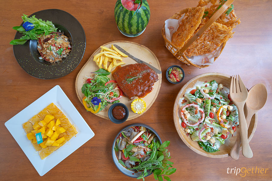 เดินเล่นชิลล์ๆ กันเรียบร้อยก็มาต่อกันที่เมนูอาหาร โดยทางร้านเสิร์ฟแบบจัดเต็มครบทั้งอาหาร ของหวาน และเครื่องดื่ม ซึ่งอาหารส่วนใหญ่ก็มีทั้งอาหารไทยและนานาชาติ ไม่ว่าจะเป็นของกินเล่น ส้มตำ ยำ อาหารจานเดียว ข้าวผัด ของทอด สปาเก็ตตี้ อีกทั้งของหวานอย่างโรตีก็มีให้เลือกมิกซ์แอนด์แมชท์ได้หลายรสชาติ แถมราคาก็ไม่ได้แพงเลย ราคาอาหารเริ่มต้นเพียงแค่ 79 บาทเท่านั้น เรียกได้ว่าขับรถมาฝากท้องสำหรับมื้อเที่ยงหรือมื้อเย็นได้สบายๆ