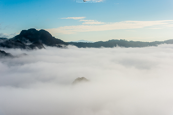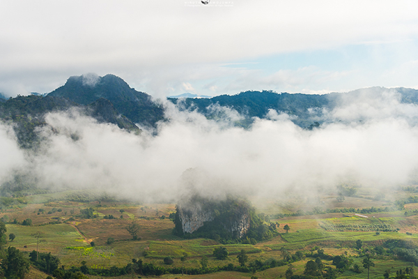 หมอกแน่นๆ แบบอยากโดดลงไปเลย ที่โผล่ขึ้นมานิดนึง เรียกว่าผาช้างน้อยนะครับ ไฮไลทของภูลังกาเลย แต่วันนี้หมอกหนามากครับ สวยไปอีกแบบ