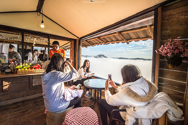 เดินมาถึงร้าน ฟินสิครับ แต่แอบฟุ้งไปนิด รอให้หมอกเป็นทะเลสวยๆ
