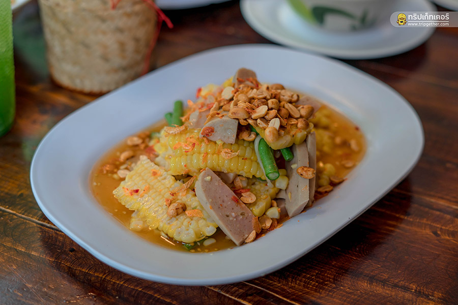 ตำข้าวโพดไข่เค็ม เป็นตำที่นัวมาก แถมบอกระดับความเผ็ดได้ (ราคา 70 บาท)