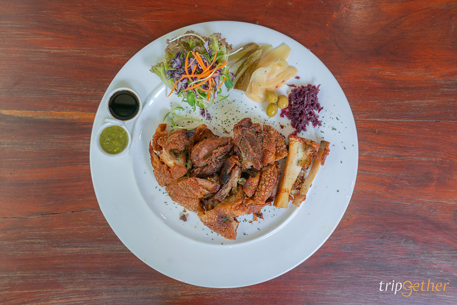 นอกจากสเต็กและเบอร์เกอร์แล้ว เมนูนี้ก็ห้ามพลาดเช่นกัน ขาหมูเยอรมันทอด เสิร์ฟพร้อมน้ำจิ้ม 2 แบบ รสชาติแบบต้นตำรับแท้ๆ กรอบนอกนุ่มใน เนื้อฉ่ำละมุนลิ้น กินพร้อมน้ำจิ้มก็อร่อยเข้ากันสุดๆ ราคาอยู่ที่ 400 บาท