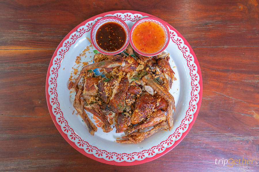 ปิดท้ายกันที่ ไก่ย่างเขาใหญ่ทอดกรอบ เมนูนี้มีความพิเศษตรงที่ไก่ย่างเขาใหญ่เป็นสูตรเฉพาะของทางร้าน ที่ปรุงรสให้ไก่มีรสชาติอร่อยกลมกล่อม นำมาทอดกรอบและกินพร้อมน้ำจิ้ม 2 แบบ รสชาติเข้ากันมากๆ ใครอยากกินต้องมาที่ร้านนี้ร้านเดียวเลย จานนี้ราคา 200 บาทเท่านั้น