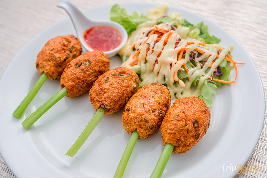 ทอดมันปลากราย ราคา 220 บาท ทางร้านเสิร์ฟมาเป็นชิ้นๆ อย่างน่ารัก เสียบด้วยก้านคะน้าทำให้หยิบกินได้ง่าย ส่วนรสชาติของทอดมันและคะน้าก็ลงตัวกันจนน่าประหลาดใจ เรียกได้ว่าตอนกัดเข้าไปสัมผัสแรกจะได้ความเนียนนุ่ม หอมกลิ่นเครื่องพริกแกง และสัมผัสต่อมาคือความกรอบหวานของก้านคะน้า เป็นเมนูที่เหมือนจะธรรมดา แต่ทางร้านก็ทำออกมาพิเศษจนแนะนำว่าต้องสั่งจริงๆ