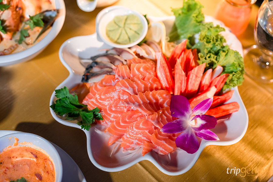 สำหรับอาหารบนเรือมีให้เลือกเยอะมาก และด้วยความที่เป็นบุฟเฟ่ต์นานาชาติ ทำให้เราได้ลองหลายอย่าง และสิ่งที่ชอบที่สุดก็คือซีฟู้ดที่สามารถตักได้ไม่อั้น ทั้งปูและกุ้งชิ้นใหญ่ สดมาก จิ้มคู่กับน้ำจิ้มซีฟู้ดยิ่งแซ่บไปอีก เอาจริงๆ การมาดินเนอร์บนเรือถือว่าได้ตอบโจทย์มื้อพิเศษ มีครบทั้งบรรยากาศและอาหารแบบจัดเต็ม