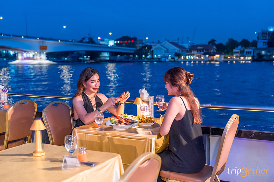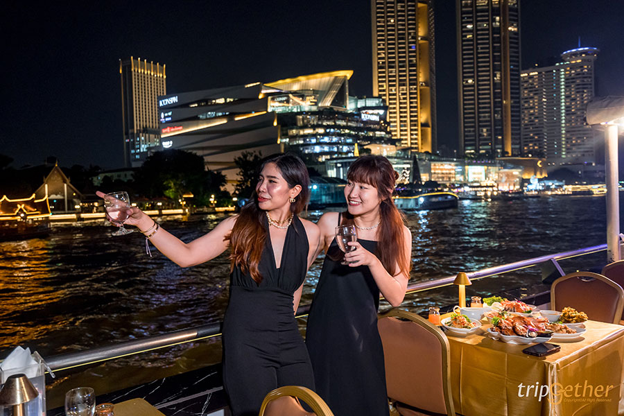 สำหรับการได้มาล่องเรือกับ เรือเจ้าพระยาครุยส์ ถือว่าเป็นอีกประสบการณ์หนึ่งที่พิเศษมากๆ ใครจะไปนึกว่าตลอดเวลา 2 ชั่วโมง เราจะได้เห็นบรรยากาศของแม่น้ำเจ้าพระยาในตอนกลางคืนว่าสวยงามและครึกครื้นขนาดนี้ ยิ่งถ้าได้มากับคนพิเศษหรือเป็นวันสำคัญก็ยิ่งเป็นความทรงจำที่น่าประทับใจ นอกจากบรรยากาศจะดี อาหารก็เรียกได้ว่าเสิร์ฟบุฟเฟ่ต์เน้นๆ อิ่มอร่อยกับซีฟู้ดจุกๆ รวมถึงบนเรือมีมุมถ่ายรูปและไฮไลท์ให้ได้เก็บภาพกลับไปเพียบ!