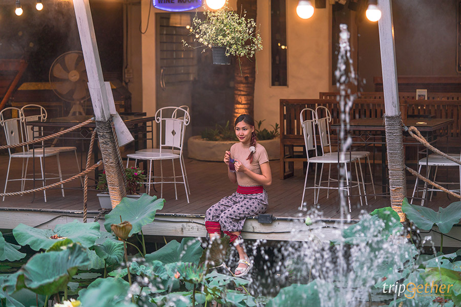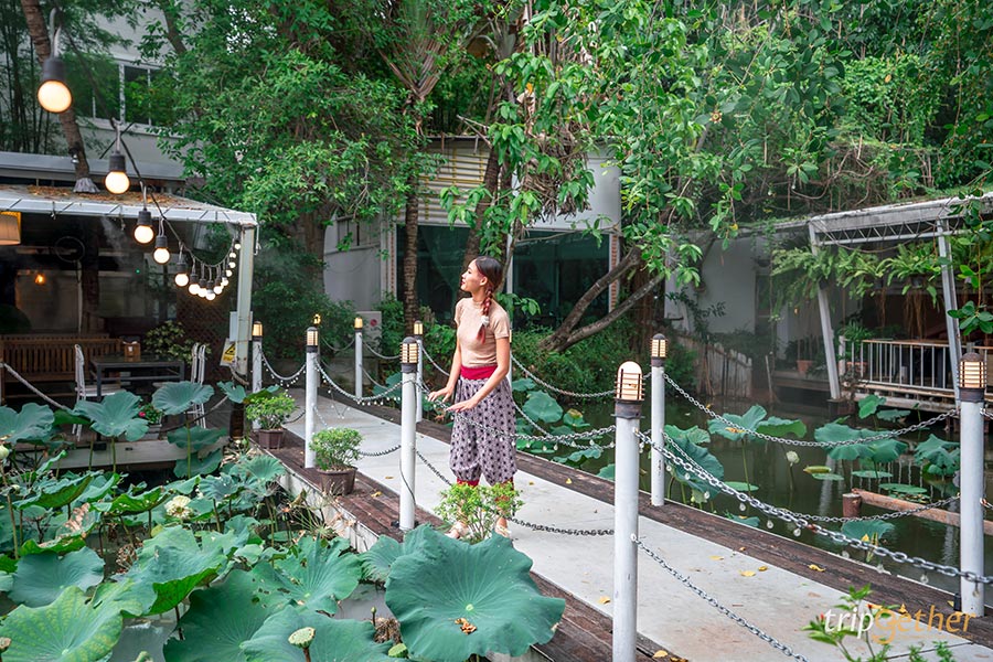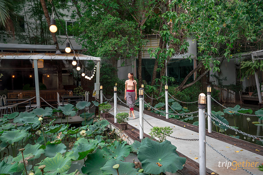 เมื่อเดินลอดซุ้มที่เป็นป้ายชื่อร้านจะพบกับทางเดินที่ทอดยาวผ่านเหล่าต้นไม้น้อยใหญ่ที่ให้ความร่มรื่น ซึ่งถือเป็นความประทับใจแรกเมื่อมาถึง ภายในร้านอาหารเหนือเชียงใหม่แห่งนี้เรียกได้ว่าบรรยากาศเหมาะกับการพักผ่อนลิ้มรสอาหารเหนือเป็นที่สุด โดยมีโซนที่นั่งห้อมล้อมอยู่รอบๆ ริมสระบัวที่มีเหล่าบัวหลวงขึ้นอวดดอกใบกันมากมาย พร้อมกับน้ำพุและหมอกจำลองที่ให้ความรู้สึกเหมือนกับพักผ่อนอยู่ในโลกเทพนิยาย นอกจากนี้บริเวณริมสระบัวยังมีทางเดินไม้สีขาวที่สามารถใช้เป็นมุมถ่ายรูปสวยๆ ไว้อัปลงโซเชียลอีกด้วย