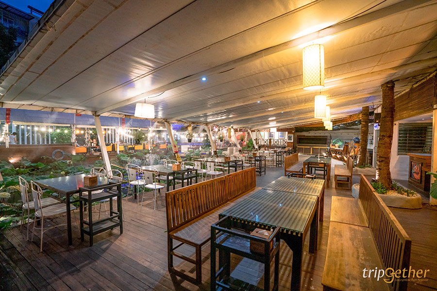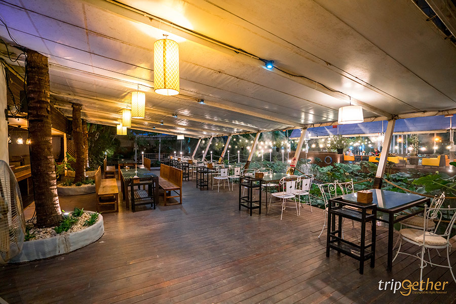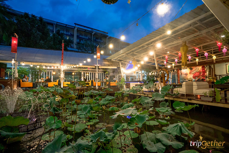 นอกจากอาหารรสชาติดีแล้ว ความสวยงามและบรรยากาศของร้านเมื่อพระอาทิตย์ตกดินไปแล้วก็จะมีความสวยงามเพิ่มมากขึ้นไปอีก เพราะทั่วทั้งบริเวณร้านโดยเฉพาะริมสระบัว จะมีไฟมากมายประดับประดาไว้ เท่านั้นยังไม่พอตามจุดต่างๆ ยังมีโคมยี่เป็งและตุง (ธง) ตกแต่งไว้เพิ่มกลิ่นอายความเป็นภาคเหนืออีกด้วย บอกเลยว่าแค่บรรยากาศร้านก็ทำให้ผู้มาเยือนประทับใจแบบเต็มๆ ไปแล้ว