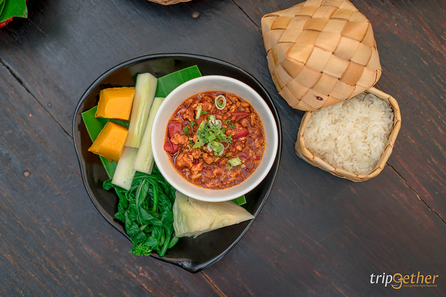 เมนูน้ำพริกที่มาแล้วต้องสั่งเลยก็คือน้ำพริกอ่อง+ผักนึ่ง รสชาติกลมกล่อม หรือจะเป็นน้ำพริกจิ้นหมู+ผักนึ่ง ที่บอกเลยว่าขลุกขลิกลงตัวสุดๆ