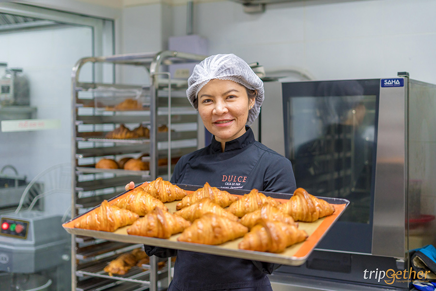 ความพิเศษของเมนูอาหารยังไม่หมดเพียงเท่านี้ เพราะ DULCE CASA DE PAN ยังมีนานาเมนูเบเกอรี่ชั้นเลิศที่ควบคุมการผลิตอย่างมีคุณภาพไม่ว่าจะเป็นเมนู Croissant ความพิเศษของเมนูที่นี่คือการใช้เนย AOP ซึ่งเป็นเนยที่ไม่มีไขมันทรานส์และได้รับการการันตีคุณภาพจากฝรั่งเศส ทำให้ครัวซองต์มีความละมุนอย่างเป็นธรรมชาติและมี After taste หอมอบอวลอยู่ในปาก เนื้อสัมผัสกรอบนอก เบา และเนื้อในนุ่มหนึบกำลังดี ราคาเพียง 100 บาท