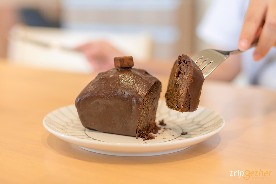 Chocolate Truffle Cake Traveling cake เนื้อเค้กที่มีความคล้ายกับ Butter Cake แต่เป็นเค้กช็อคโกแลต โดยใช้ Chocolate single original ที่มีความเข้มข้น ผสมผสานความโดดเด่นของกลิ่นและรสชาติสุดหรูหราด้วยวัตถุดิบคุณภาพจากสเปน Truffle Oil อีกทั้งยังเพิ่มความเข้มข้นด้วย Truffle Paste (ทรัฟเฟิลเนื้อละเอียด) อีกทั้งชิ้นเค้กเคลือบด้วยช็อกโกแลตที่มีส่วนผสมของ Truffle Oil และTruffle Paste อีกทั้งยังมีส่วนผสมของรัม ท็อปด้านบนด้วยนามะช็อคโกแลต นอกจากรสชาติที่เป็นเลิศแล้ว เมนูนี้ยังอิ่มท้อง เหมาะกับการใช้เป็นของว่างในวันสบายๆ หรือวันที่ทำทริปสนุกๆ และยังสามารถเก็บไว้ในตู้เย็นได้นานถึง 2 อาทิตย์เลยทีเดียว เหมือนกับในชื่อของเมนู Travelling cake ซึ่งเมนูนี้ราคาอยู่ที่ 170 บาท