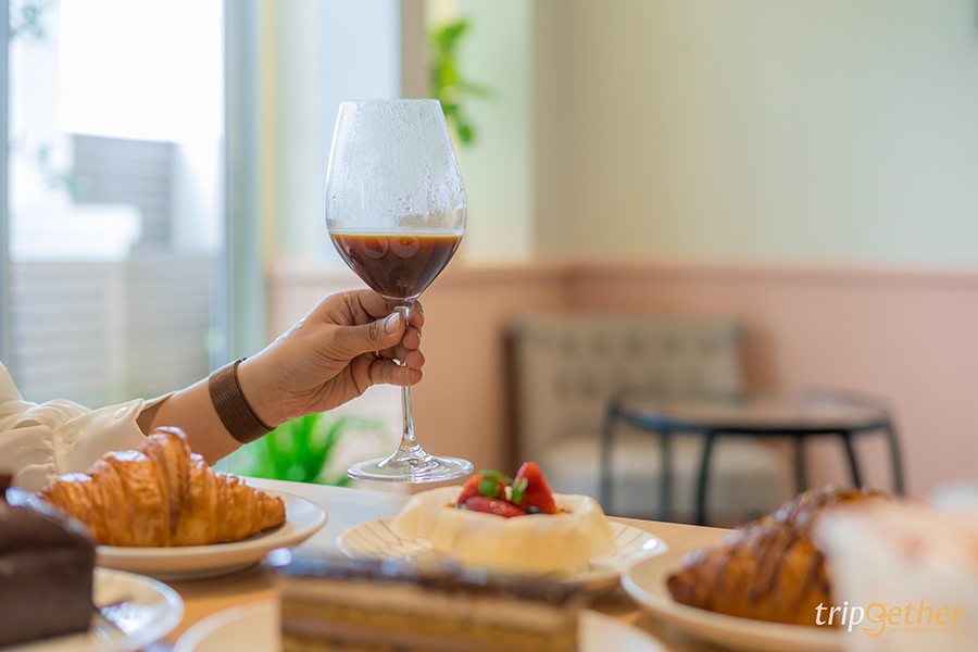 Specialty Coffee เมนูกาแฟดริปสุดพิเศษสมชื่อที่เสิร์ฟมาในแก้วไวน์ เพราะแก้วประเภทนี้จะมอบสัมผัสความหอมจากอโรม่าของกลิ่นกาแฟได้อย่างเต็มเปี่ยม และเมื่อดื่มเข้าไป ด้วยทรงของแก้วจะทำให้เครื่องดื่มเข้าไปสัมผัสกับต่อมรับรสในปากให้ได้เก็บความกลมกล่อมของกาแฟได้อย่างครบถ้วน โดยเมนูนี้สามารถเลือกชนิดของเมล็ดกาแฟได้ ความพิเศษของเมล็ดกาแฟคือทางร้านได้คัดเลือกเมล็ดจาก 4 แหล่งปลูกคุณภาพสูงจากทั่วโลกมาไว้ นั่นก็คือ เมล็ด Ethiopia ที่มีเอกลักษณ์คือความหอมกรุ่นคล้ายดอกไม้ตระกูลสีขาว ให้สัมผัสเปรี้ยวนำ ตามด้วยความหวานอ่อนๆ คล้ายผลไม้สุก เมล็ด Honduras โดดเด่นในด้านความเป็นช็อกโกแลตที่ผสานกับวิสกี้ ตัดด้วยรสเปรี้ยวคล้ายผลไม้สุก เมล็ด Brasil จะสัมผัสได้ถึงความหอมและรสชาติแบบช็อกโกแลตที่มีกลิ่นถั่วผสมอยู่ สามารถกินแบบผสมนมได้ และเมล็ด Burundi จะให้รสสัมผัสกลมกล่อมเหมือนกับเมล็ด Honduras ผสมกับ Brasil