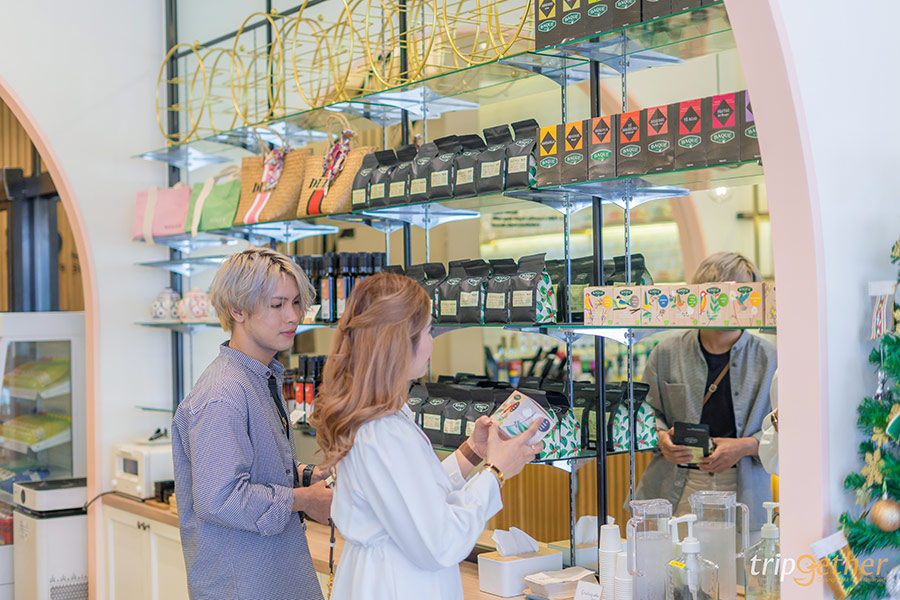 ไม่เพียงเท่านั้นทางร้านยังมีโซนให้ช้อปปิ้งชา กาแฟ และของฝากซื้อติดไม้ติดมือกลับบ้านอีกด้วย
