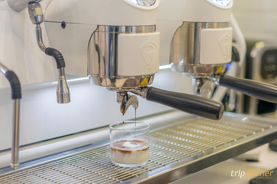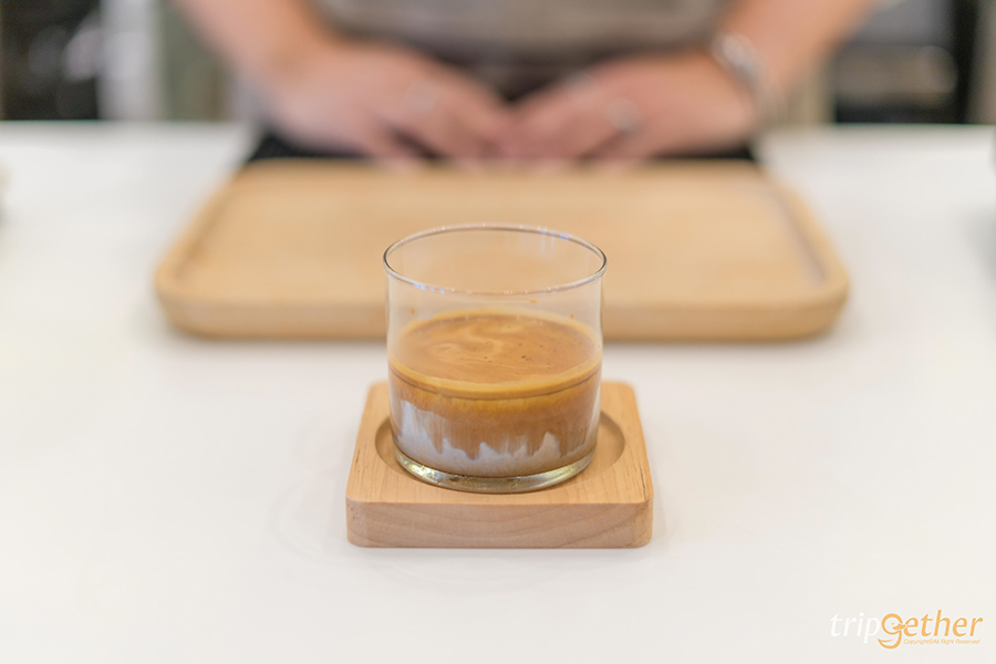 นอกจากนี้เมนูเครื่องดื่มกาแฟของทางร้านก็ยังอัดแน่นไปด้วยรสชาติและคุณภาพที่ดีเยี่ยม อีกทั้งยังสามารถเลือกระดับการคั่ว รวมทั้งชนิดของเมล็ดกาแฟได้เองอีกด้วย โดยมาเริ่มกันที่เมนู Iced Salted Caramel Macchiato เมนูกาแฟสุดละมุนที่ราดด้วยซอสคาราเมล ซึ่งเป็นคาราเมลโฮมเมดที่ทางร้านทำเอง ให้รสสัมผัสแบบดาร์กบัตเตอร์ มีความขมเล็กน้อย ผสานด้วยความเค็มและหวานกำลังดี ราคาแก้วละ 160 บาท