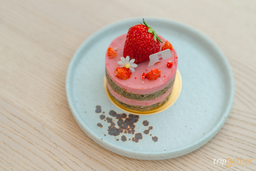 เมนู มัทฉะสตรอว์เบอร์รีเค้ก (Matcha Strawberry Cake) เอาความเป็นญี่ปุ่นทั้งชาเขียวและสตรอว์เบอร์รีมาผสมผสานกันในเมนูเดียว ความหอมกลมกล่อมของมัทฉะผสานเข้ากับความหอมหวานของสตรอว์เบอร์รีได้อย่างลงตัว ราคา 165 บาท