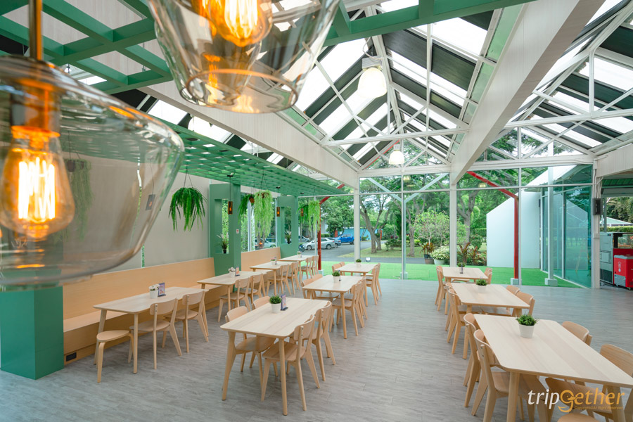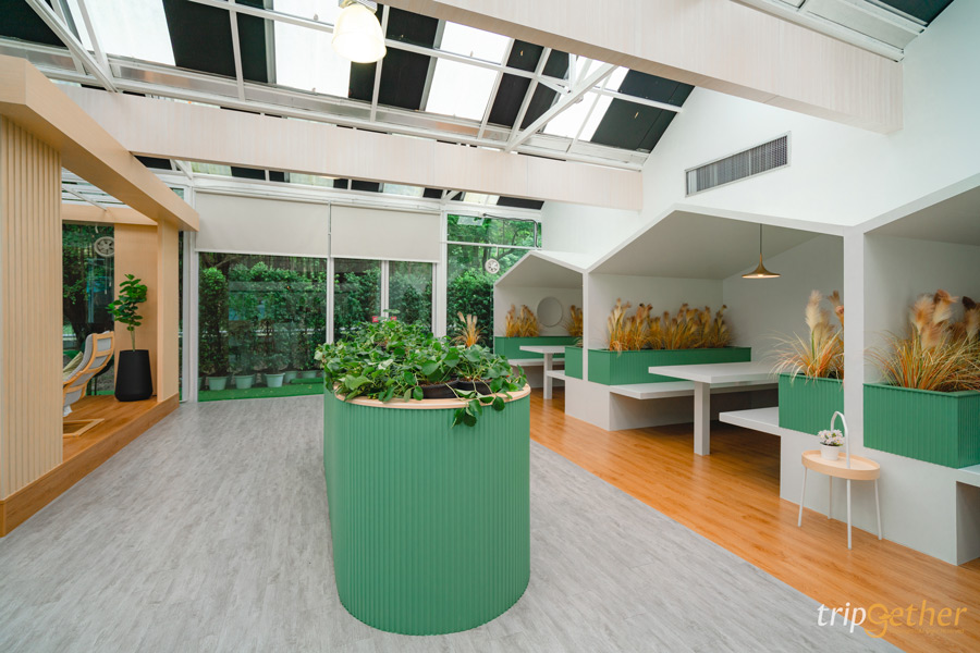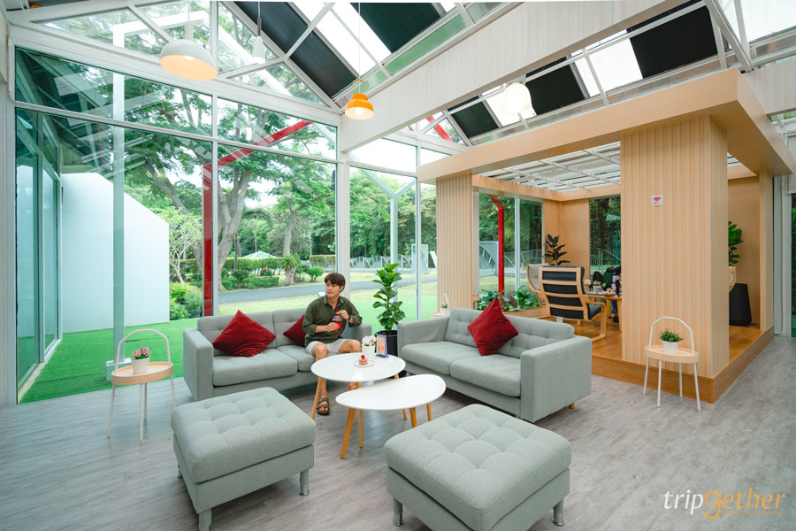 ส่วนโซนหลักโซนที่สอง จะเป็นโซนที่ตอบโจทย์สายนั่งชิลล์ในโถงโล่ง เพราะโซนนี้จะมีชุดโต๊ะเก้าอี้สุดน่ารักกระจายรองรับผู้มาเยือนไว้อย่างมากมาย แสงสว่างที่มาจากหลังคากระจกทำให้เหมาะแก่การนั่งอ่านหนังสือ หรือนั่งทำงานเป็นที่สุด สั่งเครื่องดื่มสักแก้ว นั่งทำงานไปสบายๆ ชิลล์จนอยู่ได้ทั้งวันแน่นอน