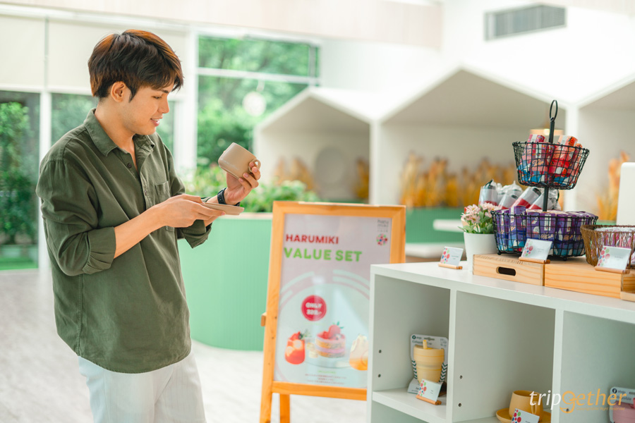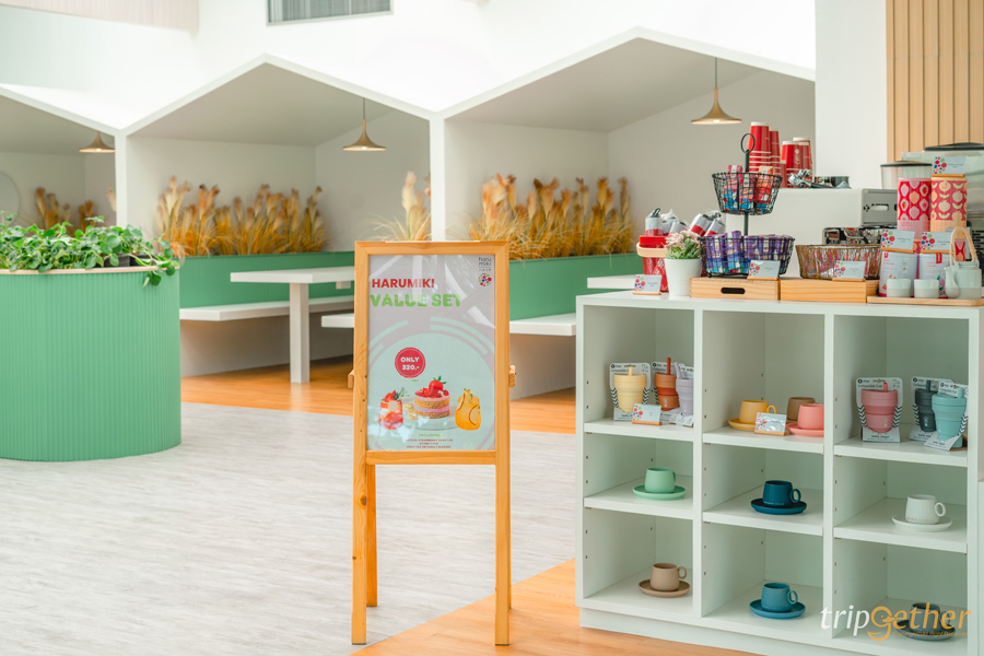 นอกจากนี้ Harumiki Farm & Cafe ยังมีของใช้น่ารักๆ อย่าง แก้วน้ำสีพาสเทล ชุดแก้วกาแฟเซรามิก ชุดน้ำชา หรือจะเป็นร่มเก๋ๆ ก็มีให้ได้เลือกซื้อกลับไปเป็นของฝากสุดมินิมอลอีกด้วย