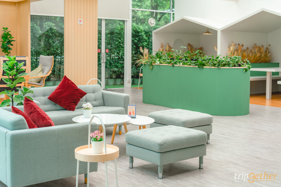 โซนที่นั่งของ Harumiki Farm & Cafe มีหลักๆ อยู่ 2 โซน ซึ่งทุกโซนจะมีปลั๊กไฟ พร้อมกับ Wi – Fi บริการให้อย่างครบครัน โดยโซนแรกก็คือโซนที่ออกแบบมาอย่างอบอุ่นและให้ความรู้สึกเบาสบาย เรียบง่ายแบบญี่ปุ่น มีที่นั่งหลากหลายรูปแบบ อย่างที่นั่งโซฟาสุดนุ่มสบาย เหมาะกับการนั่งเอนหลัง ดื่มด่ำความสงบและรสชาติของเมนูต่างๆ
