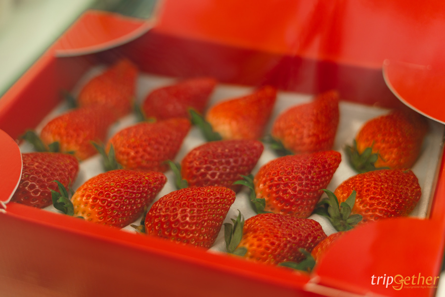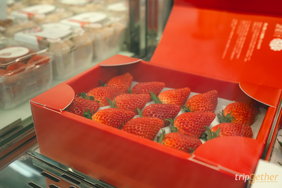 นอกจากนี้ยังมีสตรอว์เบอร์รีสดๆ จากฟาร์มที่ทางร้านคัดมาให้ ภายใต้แบรนด์ Harumiki ซึ่งมีสตรอว์เบอร์รีคุณภาพให้เลือกถึง 3 สายพันธุ์ ไม่ว่าจะเป็น สายพันธุ์ Akihime ที่มีเนื้อหวานฉ่ำนุ่มละมุน และมีกลิ่นหอมที่เป็นเอกลักษณ์ สายพันธุ์นี้ถือเป็น signature ของทางฟาร์ม สายพันธุ์ Tenshi ที่มีเอกลักษณ์คือผลที่เป็นสีขาวเนียน แปลกตา และมีรสหวานอร่อย และสายพันธุ์ Hiro Berry มีเนื้อที่แน่น สัมผัสนุ่ม ฉ่ำด้วยความหวานหอม ให้ได้เลือกซื้อกลับไปเป็นของฝากชั้นยอดกันอีกด้วย