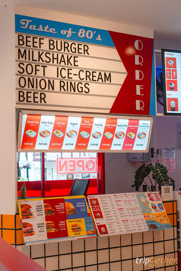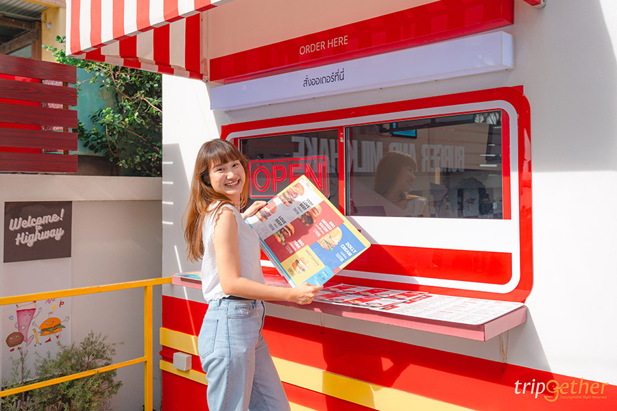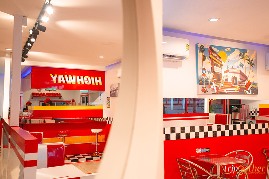 ดีไซน์ของร้านให้ฟีลเหมือนร้านอาหารบนถนนไฮเวย์ ตกแต่งมาอย่างโดดเด่นและเน้นใช้โทนสีจัดจ้าน บวกกับการออกแบบสไตล์เรโทรย้อนยุค ทำให้ร้านดูคลาสสิคและมีบรรยากาศของการย้อนวันวาน นอกจากนี้ร้านยังใส่ใจในรายละเอียดต่างๆ ทั้งเพลง กราฟิก เฟอร์นิเจอร์ ของตกแต่ง ป้ายร้าน ทุกอย่างคุมธีมไปในทางเดียวกัน ไม่ว่าจะถ่ายรูปตรงไหนก็ให้ลุควัยรุ่นเมกา แถมยังเข้ากับวัยรุ่น Y2K ด้วย
