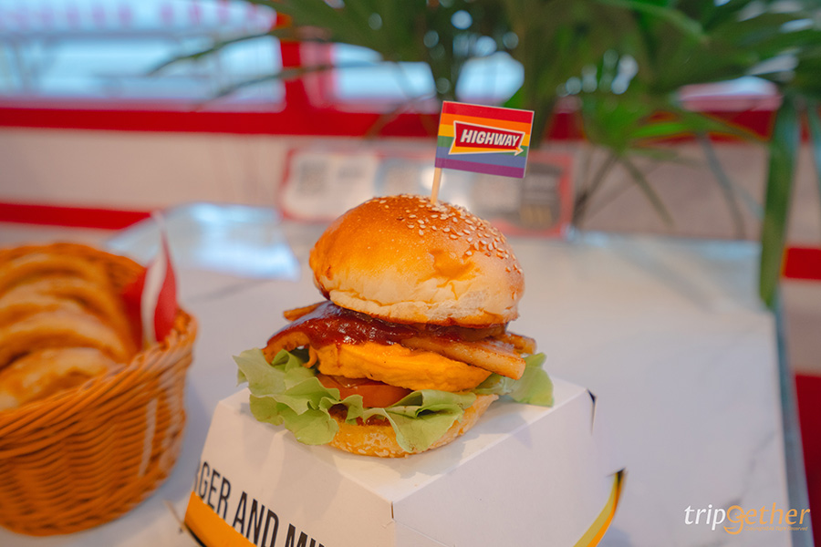 Highway Cafe บางแสน ไม่ได้มีดีแค่เช็คอินถ่ายรูป เมนูของทางร้านก็พิถีพิถันและใส่ใจมากๆ โดยร้านได้พัฒนาสูตรอาหารเอง อย่างแป้งเบอร์เกอร์เป็นของทางร้านทำเองหรือซอสก็เป็นสูตรเฉพาะ รวมถึงเลือกใช้แต่วัตถุดิบชั้นดี เรียกได้ว่าเป็นเบอร์เกอร์โฮมเมดระดับพรีเมียมอย่างแท้จริง