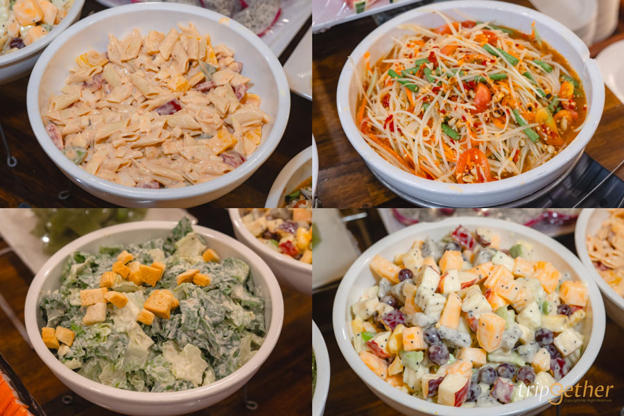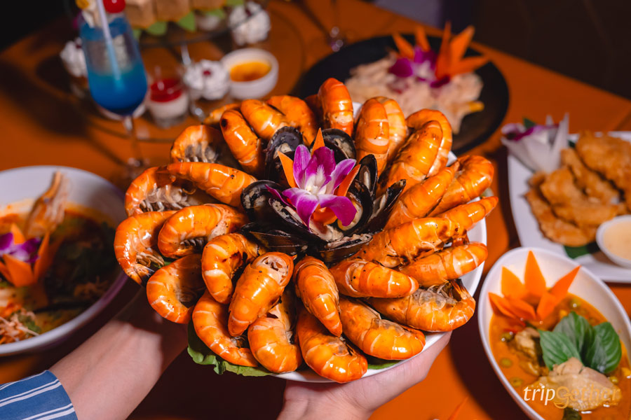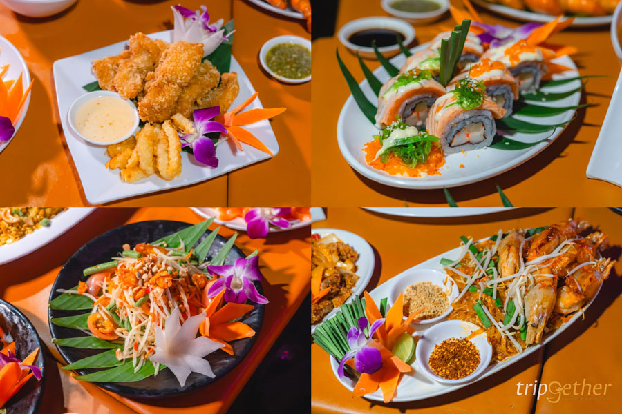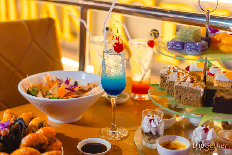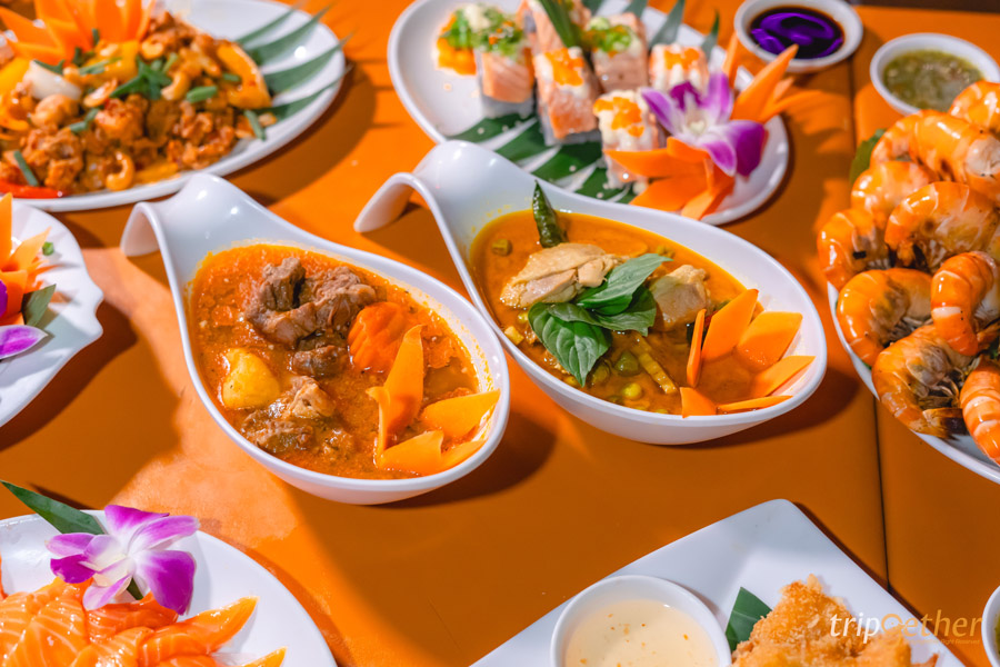 เมนูบุฟเฟ่ต์นานาชาติมีทั้งอาหารไทยสุดขึ้นชื่อ อาหารญี่ปุ่นยอดนิยม เมนูคลาสสิกจากฝั่งยุโรป เมนูอินเดียสุดกลมกล่อม รวมทั้งขนมหวานหลากหลายรูปแบบ ผลไม้ตามฤดูกาล และเครื่องดื่มที่ครบทุกสไตล์ ให้เลือกตักกันแบบไม่อั้น