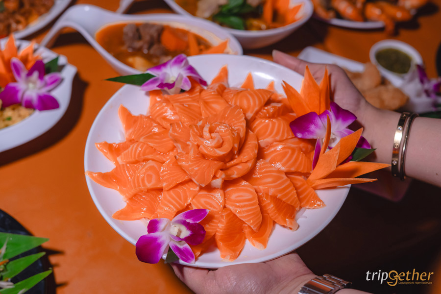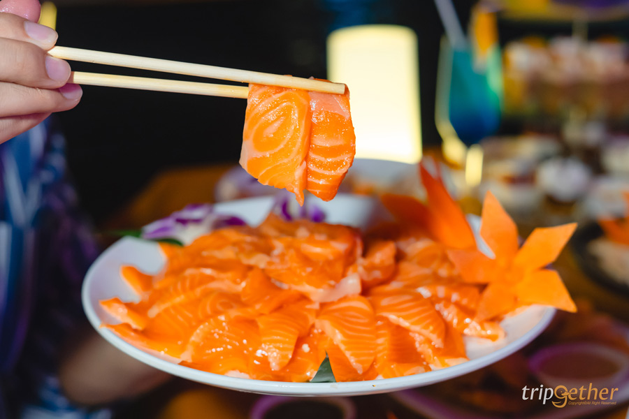 ที่ขาดไม่ได้สำหรับเมนูอาหารญี่ปุ่นเลยก็คือ แซลมอนซาซิมิ เมนูปลาดิบในดวงใจของใครหลายๆ คน ที่มีเสิร์ฟแบบไม่อั้น แล่ใหม่กันแบบจานต่อจาน พร้อมกับโชยุและวาซาบิ