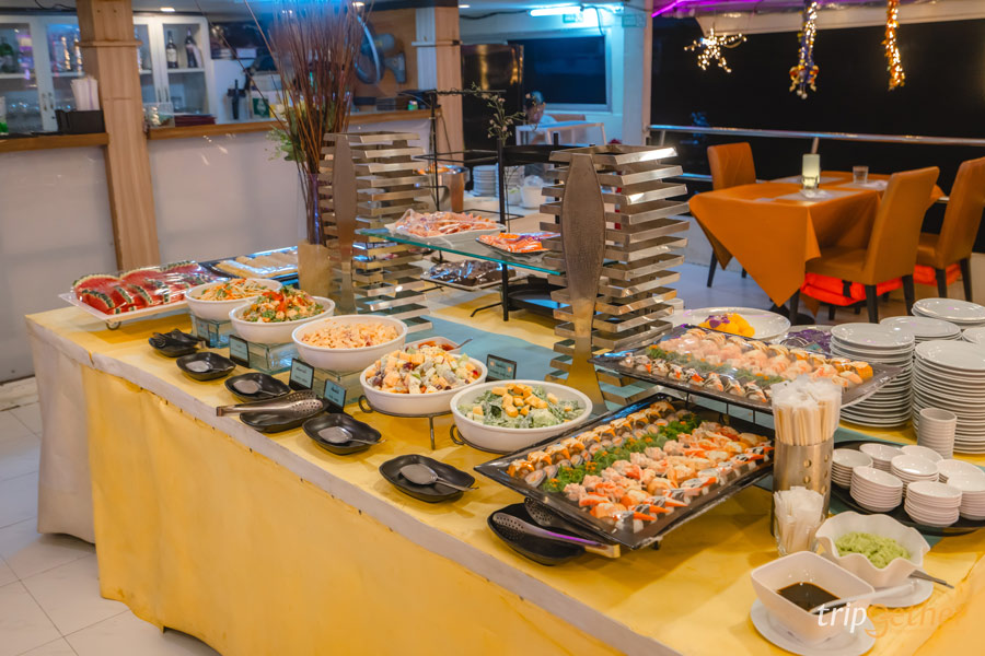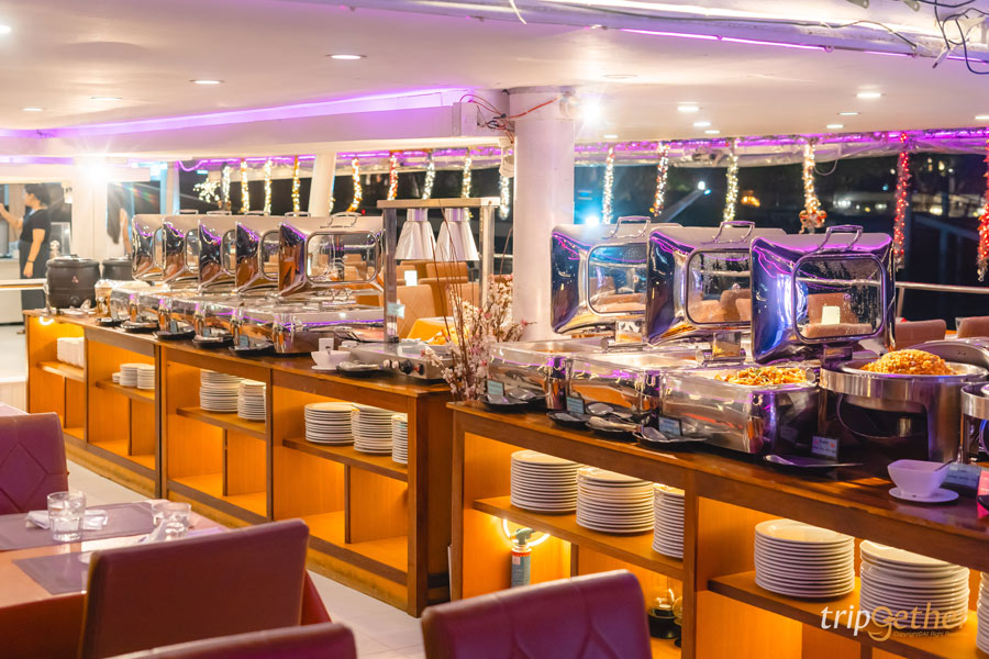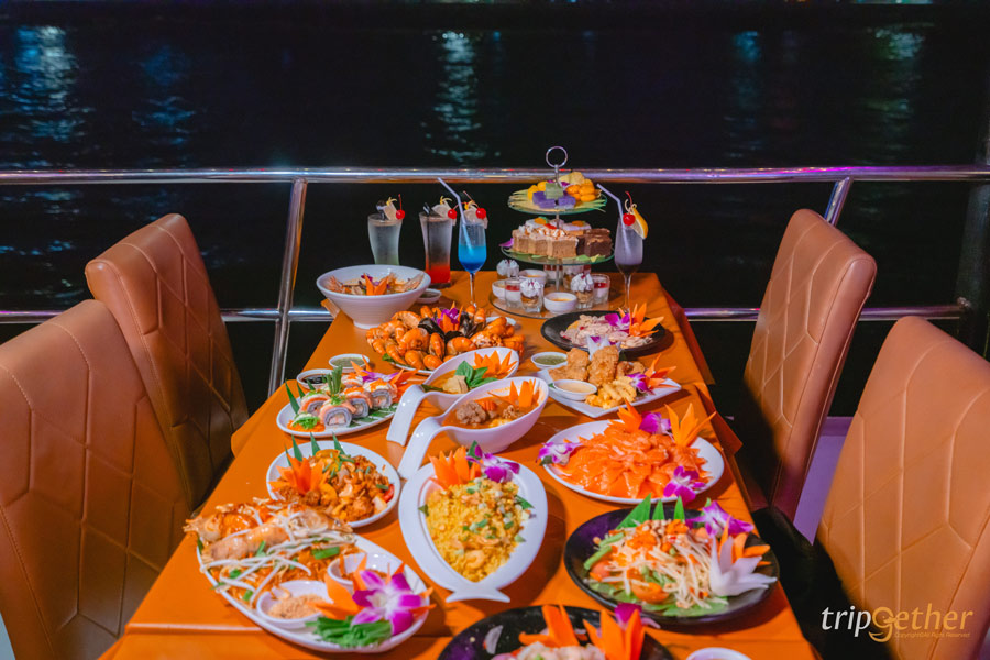 นอกเหนือจากบรรยากาศและเส้นทางการล่องเรือแล้ว ความพิเศษอีกอย่างที่นับว่าเป็นไฮไลท์ที่ช่วยเพิ่มความคุ้มค่าและน่าประทับใจของ เมอริเดียน ครูซ 2 (Meridian Cruise 2) ก็คือ ไลน์อาหารบุฟเฟ่ต์นานาชาติ ที่ยกเอาอาหารขึ้นชื่อจากหลากหลายชาติมาเสิร์ฟให้กันแบบสดใหม่