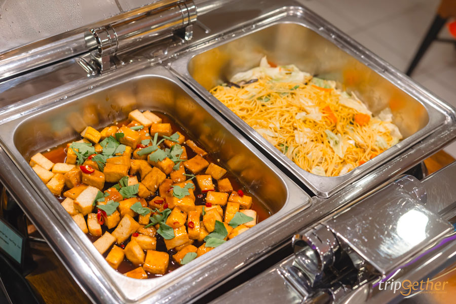 อีกทั้งยังมีเมนูอาหารเจ อย่างผัดหมี่ซั่วและเมนูจากเต้าหู้ เสิร์ฟให้สำหรับคนที่เป็นสายอาหารเจอีกด้วย