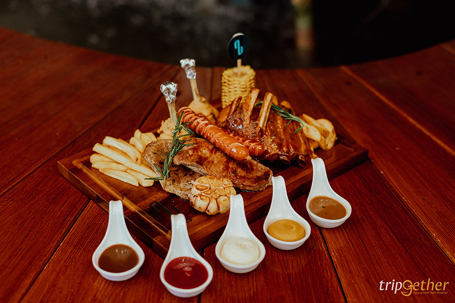 เอาใจสายเนื้อด้วยเมนูแพล็ทเตอร์รวมเนื้อ มีทั้งซี่โครงหมูบาร์บีคิว สเต็กเนื้อนิวซีแลนด์ ไก่ทอด หมูสันคอ ขาไก่เยอรมัน เสริมด้วยเว็จโปเตโต้ เฟรนช์ฟรายส์ ไส้กรอกเวียนนา เสิร์ฟคู่กับซอสดิปที่มีให้เลือกถึง 5 อย่าง บอกเลยว่าฟินแน่นอน ราคา 899 บาท ซึ่งเมนูนี้มีโปรสุดคุ้มที่จับคู่กับเครื่องดื่มด้วยนะ