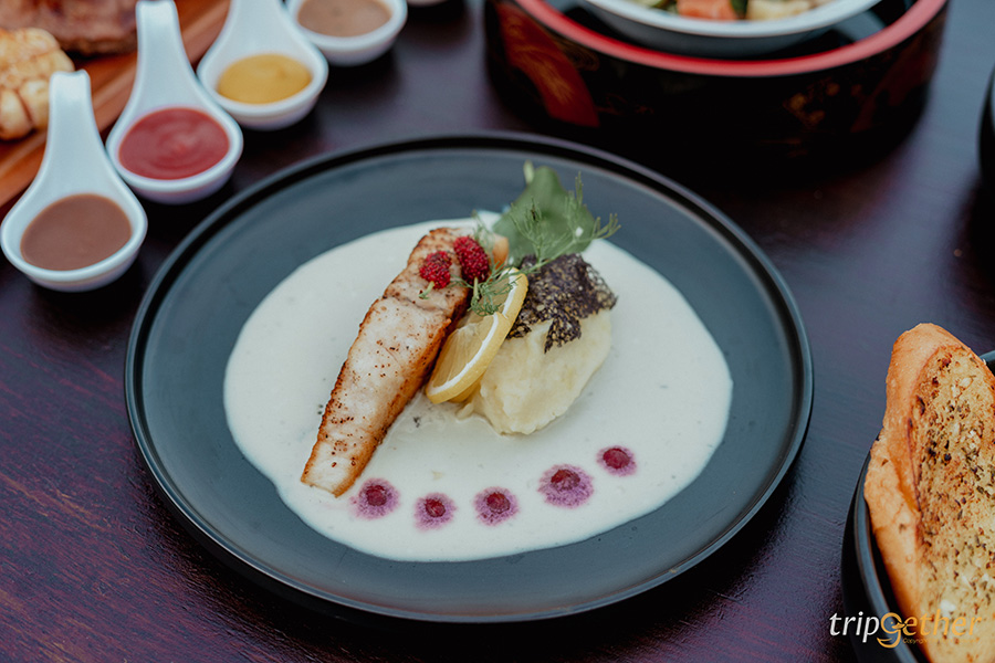 เมนูจานสวยนี้ก็คือ สเต็กปลากะพงซอสการ์ลิค แต่งจานได้สวยงามน่ากินเป็นที่สุด ทั้งอร่อย หอมละมุน และถ่ายรูปสวยอีกด้วย เมนูเพียง 229 บาท