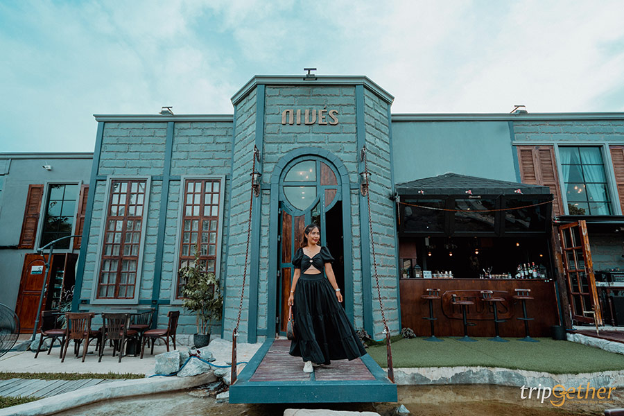 Nives Cafe and Bar ถือเป็นแลนด์มาร์กแห่งใหม่ของนครปฐมเลยก็ว่าได้ ด้วยรูปแบบคอนเซ็ปต์การตกแต่งร้านที่ได้จำลองความเป็นตะวันตกผ่านตัวอาคารปราสาทสไตล์ยุโรป รวมทั้งการจัดวางเหล่าต้นไม้และเฟอร์นิเจอร์ จึงทำให้เมื่อมาเยือนคาเฟ่นครปฐมแห่งนี้เหมือนกับว่าได้ไปเที่ยวต่างประเทศ บริเวณพื้นที่ของร้านเต็มไปด้วยความร่มรื่นจากธรรมชาติ และใจกลางของพื้นที่ก็มีสระน้ำสีฟ้าพร้อมกับน้ำตกสายเล็กๆ ที่จะมอบความผ่อนคลายให้กับผู้มาเยือนขณะที่นั่งพักผ่อนอีกด้วย