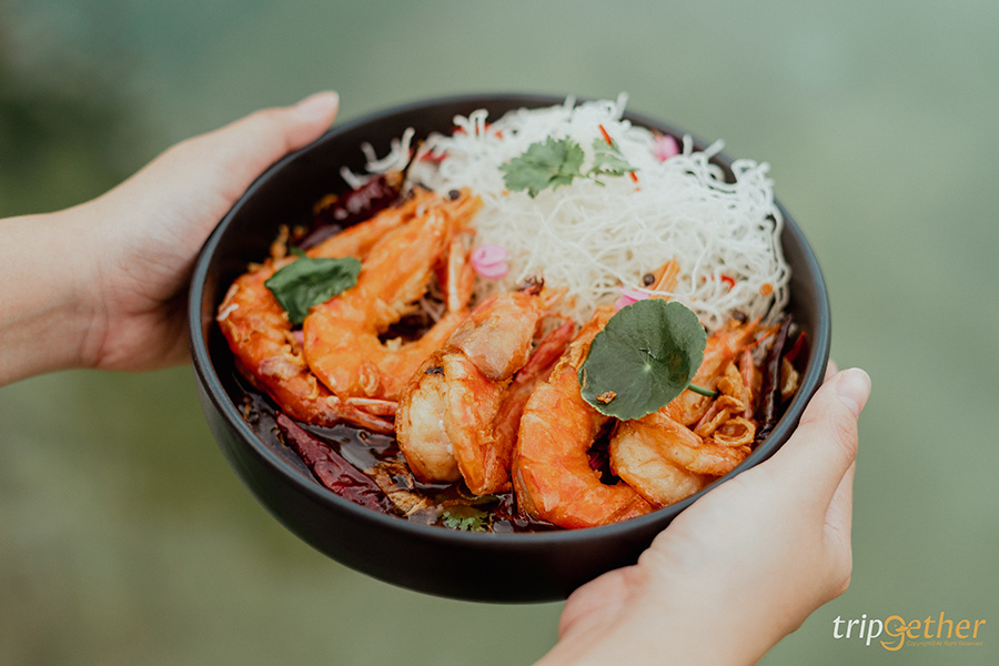 เมนูอาหารไทยสุดคลาสสิกจานนี้ก็คือ กุ้งทอดซอสมะขาม กุ้งเนื้อแน่นตัดด้วยรสเปรี้ยวหวานของซอสมะขาม เหมาะกับคนทุกช่วงวัย จานนี้ราคา 255 บาท