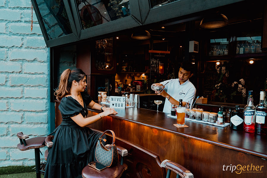 ยังไม่หมด! เพราะไฮไลท์ของ Nives Cafe and Bar ที่สายชิลล์ห้ามพลาดเลยก็คือ บาร์ไม้ริมน้ำ ที่มีทั้งเมนูค็อกเทลและม็อกเทลสุดสร้างสรรค์พร้อมให้สายชิลล์ทั้งหลายได้มาสัมผัสรสชาติกันอีกด้วย