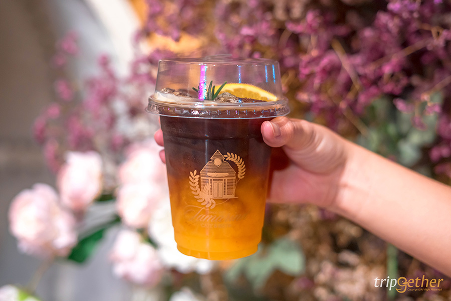 นอกจากนี้ยังมีเมนูเครื่องดื่มประเภทชาและกาแฟที่อยากจะแนะนำก็คือ กาแฟส้ม 110 บาท เมนูชาร์จพลังแก้ง่วง สำหรับคนที่ไม่ชอบกินขมเกินไปก็มีกลิ่นส้ม รสหวานอมเปรี้ยวตัดความขม กินรวมๆ กันแล้วพอดีมาก