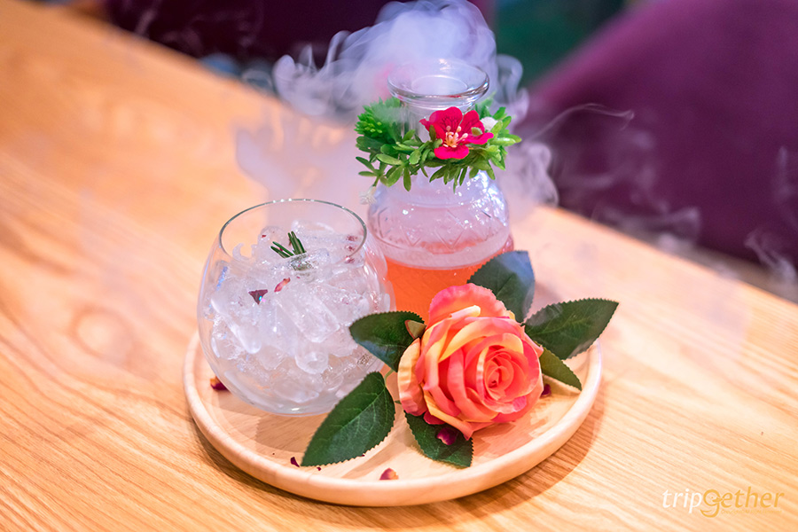 ปิดท้ายด้วยเมนูเครื่องดื่มที่นอกจากอร่อยสดชื่นแล้ว ยังสวยสมกับสไตล์คาเฟ่แฟนตาซีมาก เมนูแรกที่อยากแนะนำก็คือ Vally rose 129 บาท เครื่องดื่มเบาๆ ที่เสิร์ฟมาอย่างสวยงาม ประดับด้วยดอกกุหลาบ และดูยิ่งใหญ่ด้วยควันลอยฟูฟ่อง รสชาติเบาๆ หอมกลิ่นดอกกุหลาบ ค่อยๆ จิบทีละน้อยกลิ่นหอมละมุนไปทั่วปากเลย