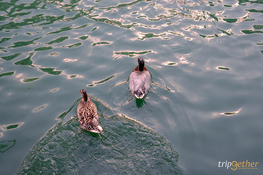มีฝูงเป็ดน้อยว่ายน้ำมาทักทายตลอดเวลา
