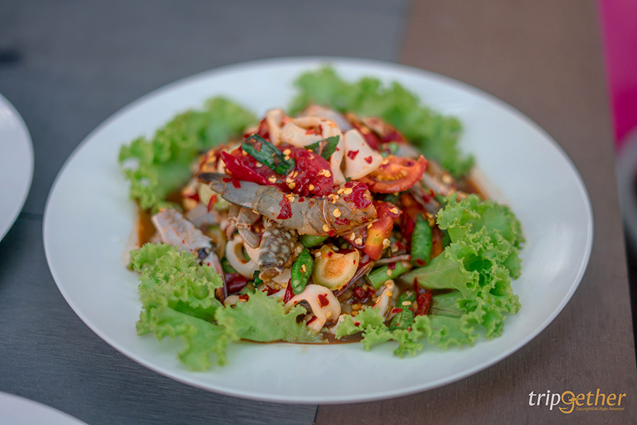 มากันที่เมนูแรกตำนรกเดือดราคา 190 บาท จัดเต็มอาหารทะเลทั้ง กุ้ง ปู หมึก คลุกเคล้าน้ำยำรสจัดจ้านกับวัตถุดิบสดใหม่ บอกเลยว่าอาหารทะเลกับยำเป็นอะไรที่เข้ากันมาก